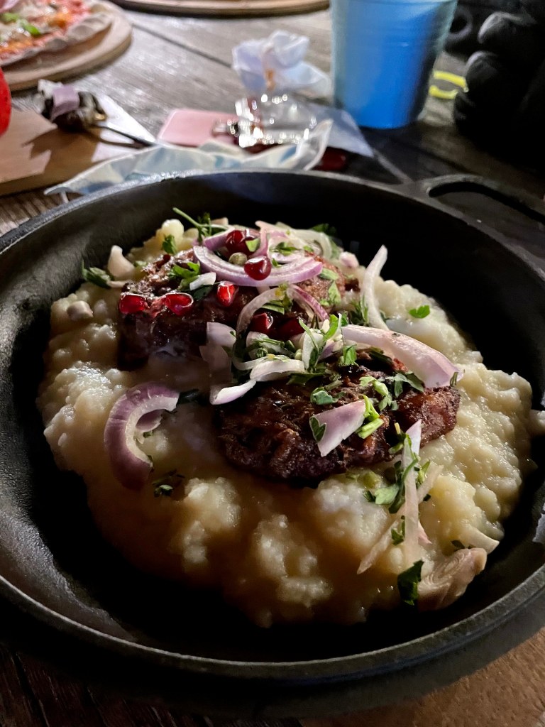 Once we landed and drove down to Best Western in Gudauri, we rested up for a bit, got into our snow gear and walked up the mountain to the ‘Drunk Cherry’ restaurant – always look to Google & Trip Advisor Reviews to find the best places.